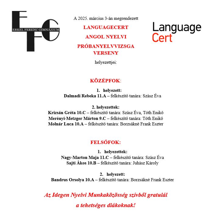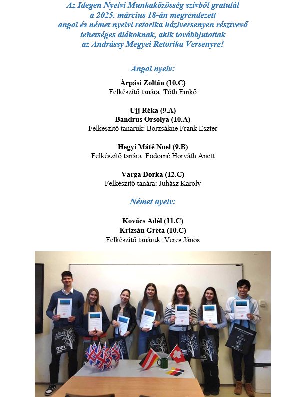 Angol és német nyelvi retorikai verseny vármegyei eredmények 2025.