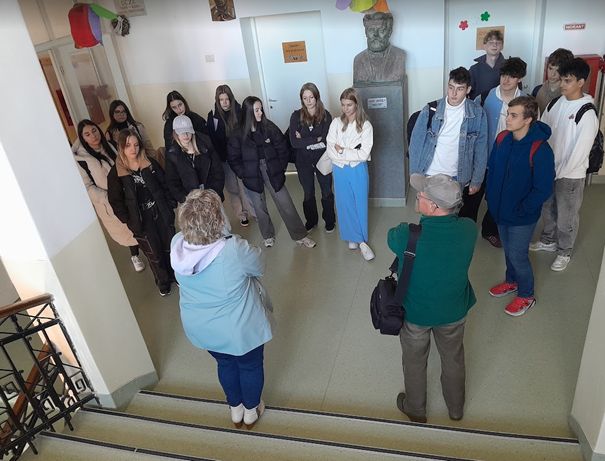 2024.10.21-én Spier Tünde igazgató asszony mesélt az iskola történetéről kimerítően. A frekventált helyek (ezúttal 18 db) meglátogatása közben mindenhol a diákok olvastak fel pársoros ismertetőt: megtekintettük a polgármesteri hivatalt, a Kultúrpalotát, a Maros-parti sétányt, a Moise Nicoară Főgimnáziumot, a Ioan Slavici színházat, a Páduai Szent Antal-templomot, a Munkácsy- és Tóth Árpád-emléktáblákat, a Földes-patikát, a belvárosi református templomot, a víztornyot, a várat persze csak kívülről (mert katonai terület), a pénzügyi palotát Külön megemlékeztünk a közös pontokról: pl. Salacz Gyula aradi polgármester, aki Gyulán született, ahogyan Moise Nicoară is.