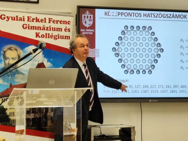 Ezt követte dr. Molnár István, a Gál Ferenc Egyetem egyetemi docensének és Borbola Gábor, a Gál Ferenc Egyetem mestertanárának közös előadása A középpontos hatszögszámok néhány tulajdonságáról - szemléletesen is címmel, amely tényleg nagyon szemléletes, sőt még hangulatos is volt.